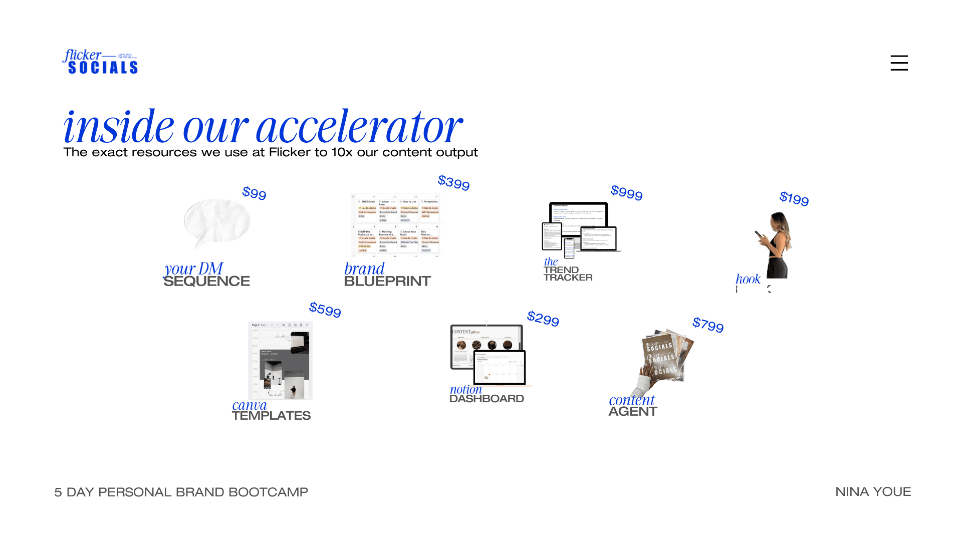Nina Youe is a social media strategist, content director, and founder of Flicker Socials, a multi–six-figure creative agency built entirely off the back of her personal brand. With a combined following of over 70,000 across her social platforms, Nina has built a loyal community through authentic storytelling, sharp strategy, and a strong visual identity that converts attention into revenue..